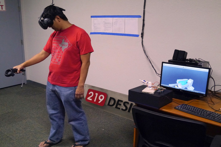 硅谷产品设计公司219Design的一项技术就是这样。该公司研究人员利用3D打印、开源电子部件和聪明的界面,开发了一款能利用HTCVive虚拟现实头盔控制的机械臂。