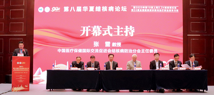 上海市卫生健康委员会副主任张浩教授,上海申康医院发展中心医疗事业部沈兵主任,中华医学会结核病学分会主任委员唐神结教授,中国防痨协会理事长刘剑君教授,上海市肺科医院院长艾开兴教授,中国医疗保健国际交流促进会会长韩德民院士出席开幕式并致辞。