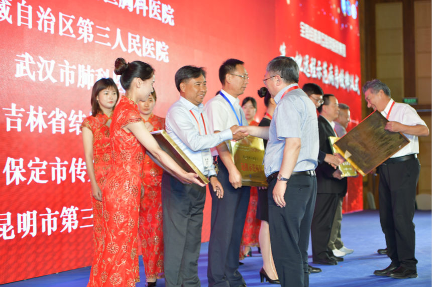 全国结核病互联网医院集团还创造性地建立了“远程病房”,由专家团队和下级医院医生团队提供在线服务。创新联盟理事长许绍发院长、副理事长吴琦院长、艾开兴院长为保定市传染病医院、吉林省结核病医院、昆明市第三人民医院、武汉市肺科医院、西藏自治区第三人民医院、新疆维吾尔自治区胸科医院这六家“第一批远程示范病房”颁发了“远程示范病房”牌匾。