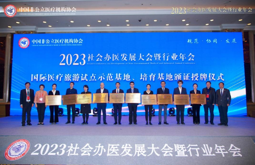为促进国际医疗旅游行业持续健康规范发展,对23家国际医疗旅游试点示范基地机构单位授牌,分别为上海生命树医疗美容门诊部、上海众康门诊部、上海全康医疗中心、上海百汇医院、上海晟乐门诊部、上海爱尔眼科医院、广州新市医院、中一东北国际医院、沈阳和平平安好医综合门诊部、平安好医(武汉)综合门诊部、南昌平安好医健康体检中心、北京五洲妇儿医院、西安交通大学第二附属医院、武汉市普仁医院、湖北医程网科技有限公司、苏州明基医院、南京明基医院、海南成美医院、海南省肿瘤医院、珠海禅诚医院、厦门大学附属厦门眼科中心、嘉兴凯宜医院、福建厚新大健康产业有限公司;国际医疗旅游培育基地授牌单位7家,分别为正大光明眼科集团、广州平安好医健康体检中心、平安好医襄阳综合门诊部、合肥平安好医综合门诊部、昆明圣益血液透析中心、青岛和润堂综合门诊部、重庆平安好医经纬综合门诊部。
