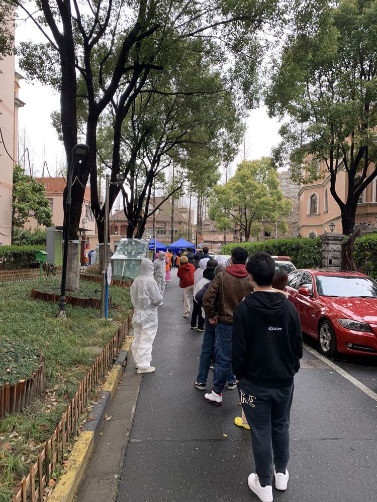 3月28日浦东封控第一天,浦东全民大筛查。凌晨3:50天不亮队员就出发了,40多分钟到达周浦社区集合分配点。踏着朝阳队员们分别来到繁荣馨苑、明天华城等小区为居民采样,直到临近黄昏才结束。下图为长江医院和江湾医院、中大医院组成的小分队在封控楼前合影。