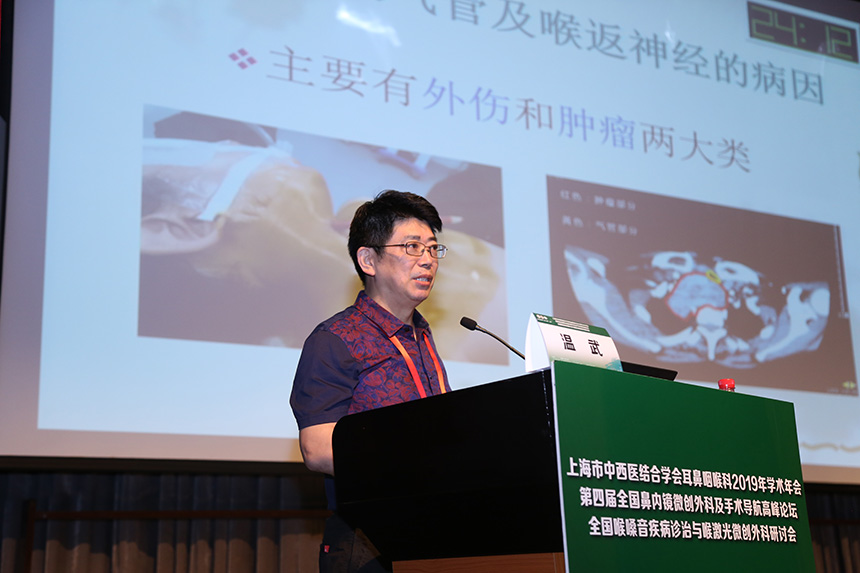 海军军医大学附属长海医院耳鼻咽喉头颈外科主任医师温武教授作《伤及气管及喉返神经的诊疗探讨》主旨演讲。