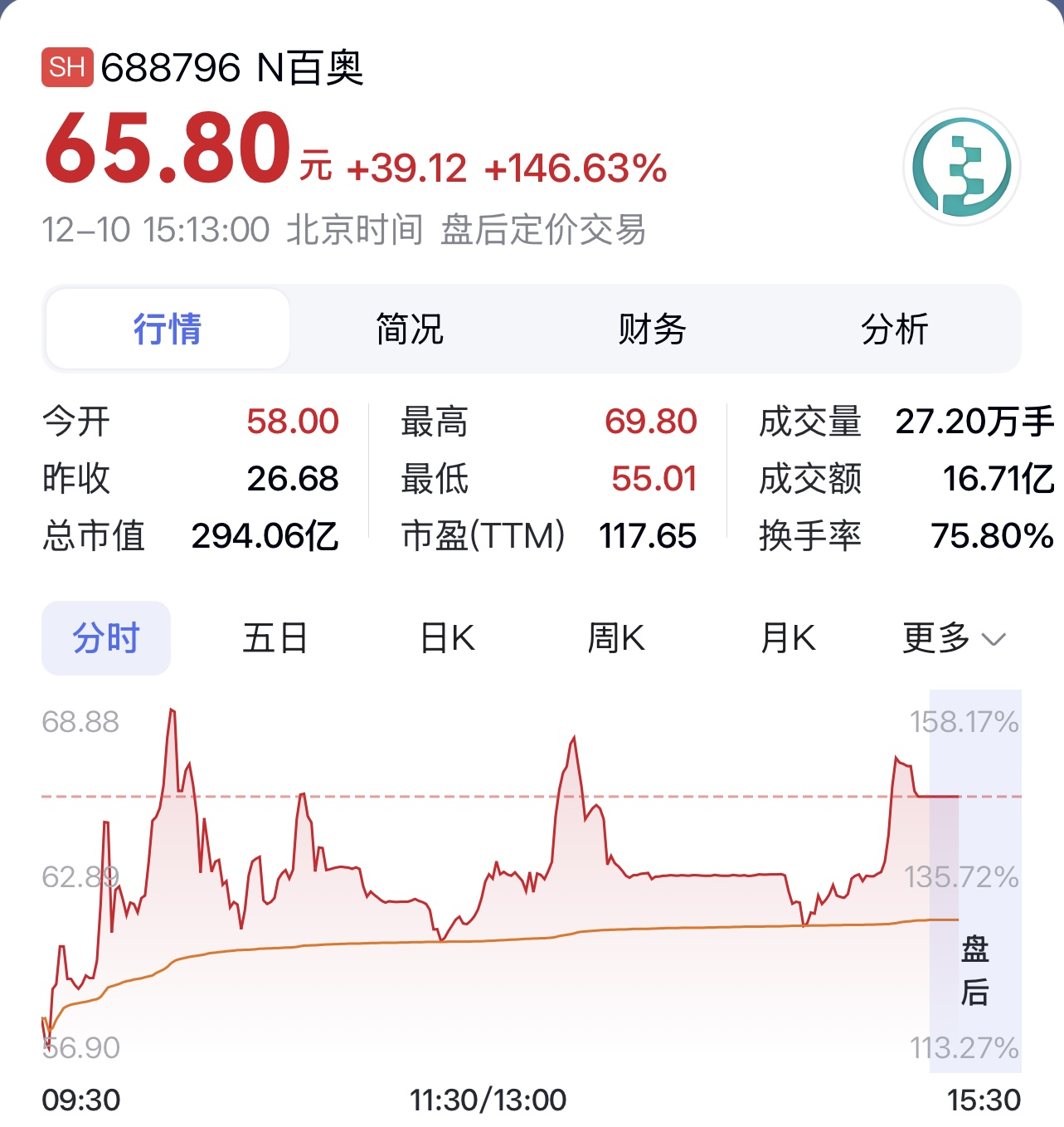 本次公司发行价格为26.68元/股,开盘价为58元,较发行价上涨117%。以开盘价计算,公司市值超259亿元。