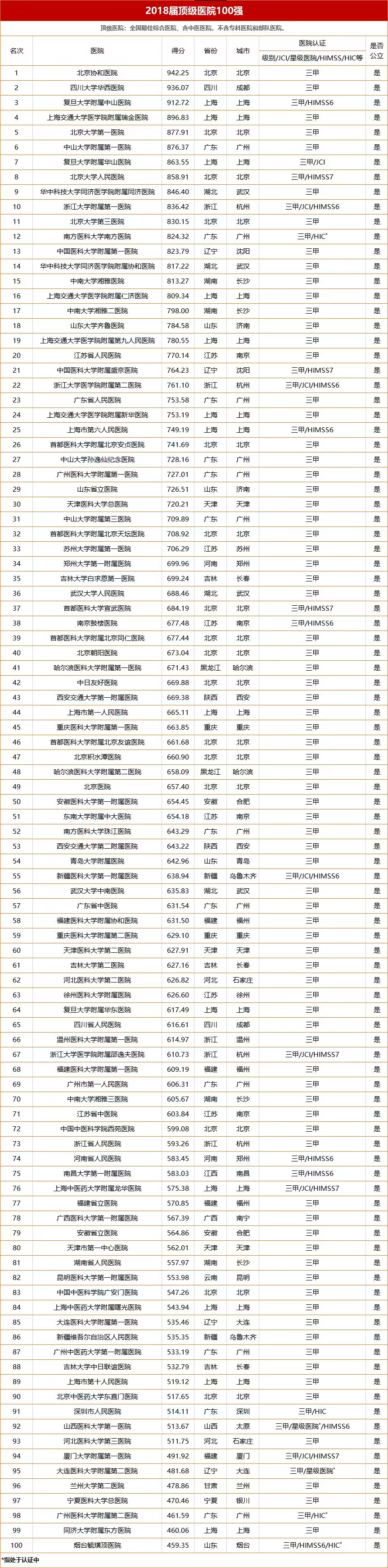 世界医疗网(上海)徐成梅报道 近日,由艾力彼主办的《2019中国医院竞争力大会》于广州召开。会场发布《2018中国医院竞争力·顶级医院100强》,具体名单如下: