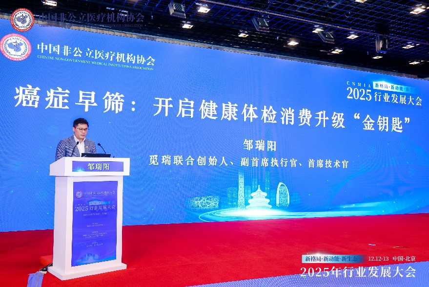 本环节由协会继续医学教育分会副会长、西安国际医学中心医院执行院长张斌主持,协会健康体检分会副会长、美年健康集团高级副总裁江颖以“数据驱动、科技创新,构建AI健康管理新生态”为主题,系统阐述了人工智能技术如何重构传统健康管理服务模式,通过数据智能实现从单一体检服务向全生命周期健康管理的战略升级。觅瑞联合创始人、副首席执行官、首席技术官邹瑞阳围绕“癌症早筛:开启健康体检消费升级‘金钥匙’”,深入剖析了早筛技术突破对健康消费市场的催化作用,指出精准早筛正在成为驱动医疗消费品质升级的核心引擎。迈瑞医疗社会办医事业部总经理张昀聚焦“数智创新助力社会办医高质量发展”,从产业赋能角度展示了智能医疗设备与数字化解决方案如何提升社会办医的运营效率与服务品质,为医疗机构高质量发展提供技术基础。